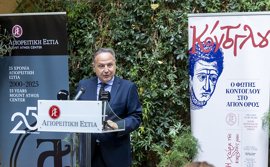 Με μεγάλη λαμπρότητα πραγματοποιήθηκαν χθες 26 Οκτωβρίου 2025, ανήμερα της εορτής του πολιούχου της Θεσσαλονίκης Αγίου Δημητρίου, τα εγκαίνια της έκθεσης «Η χώρα της καρδιάς μου. Ο Φώτης Κόντογλου στο Άγιον Όρος».