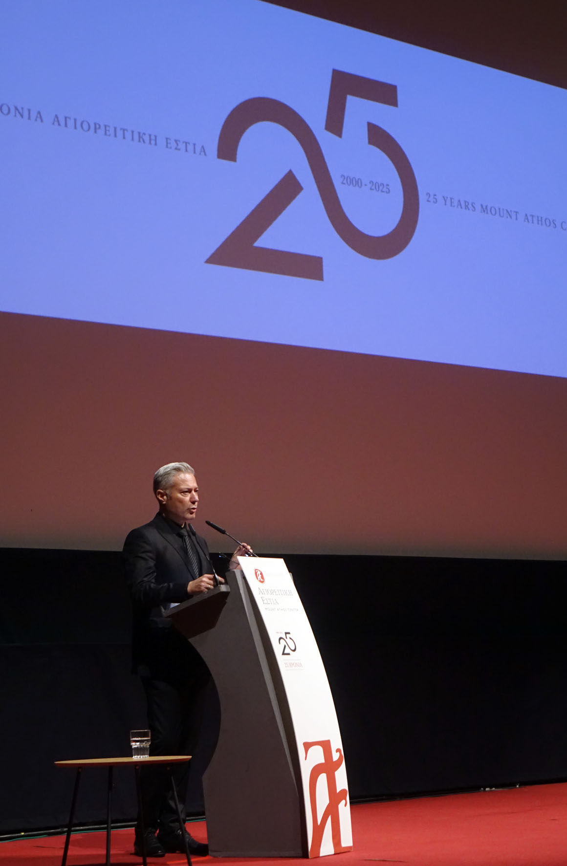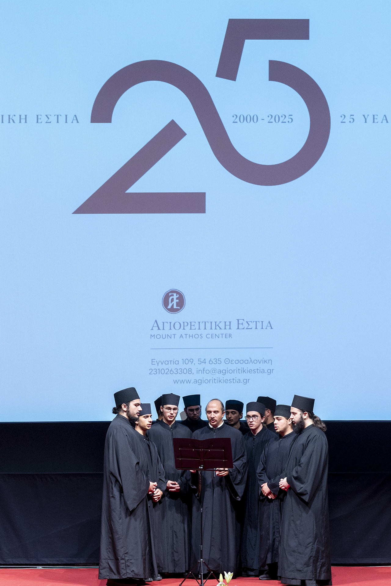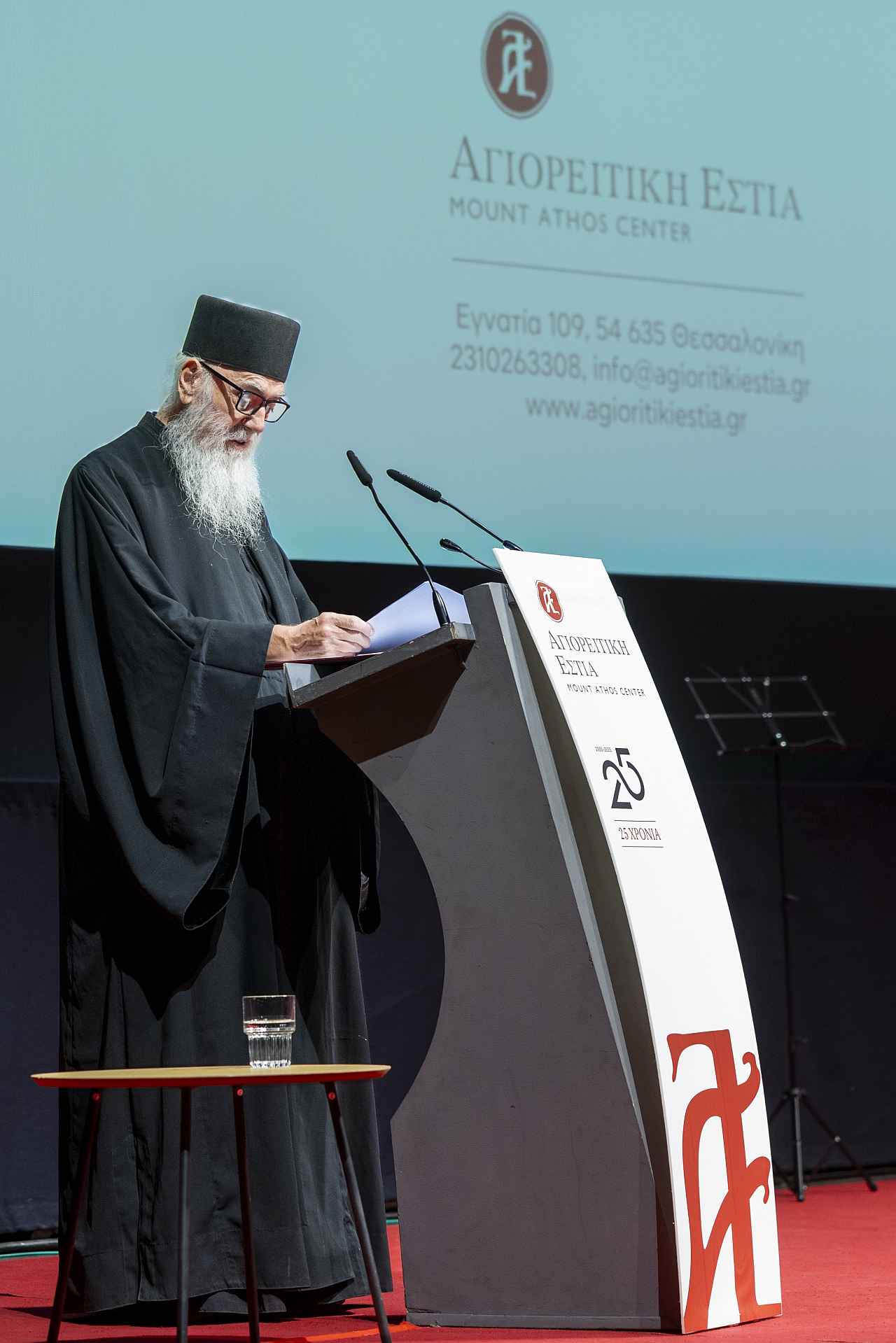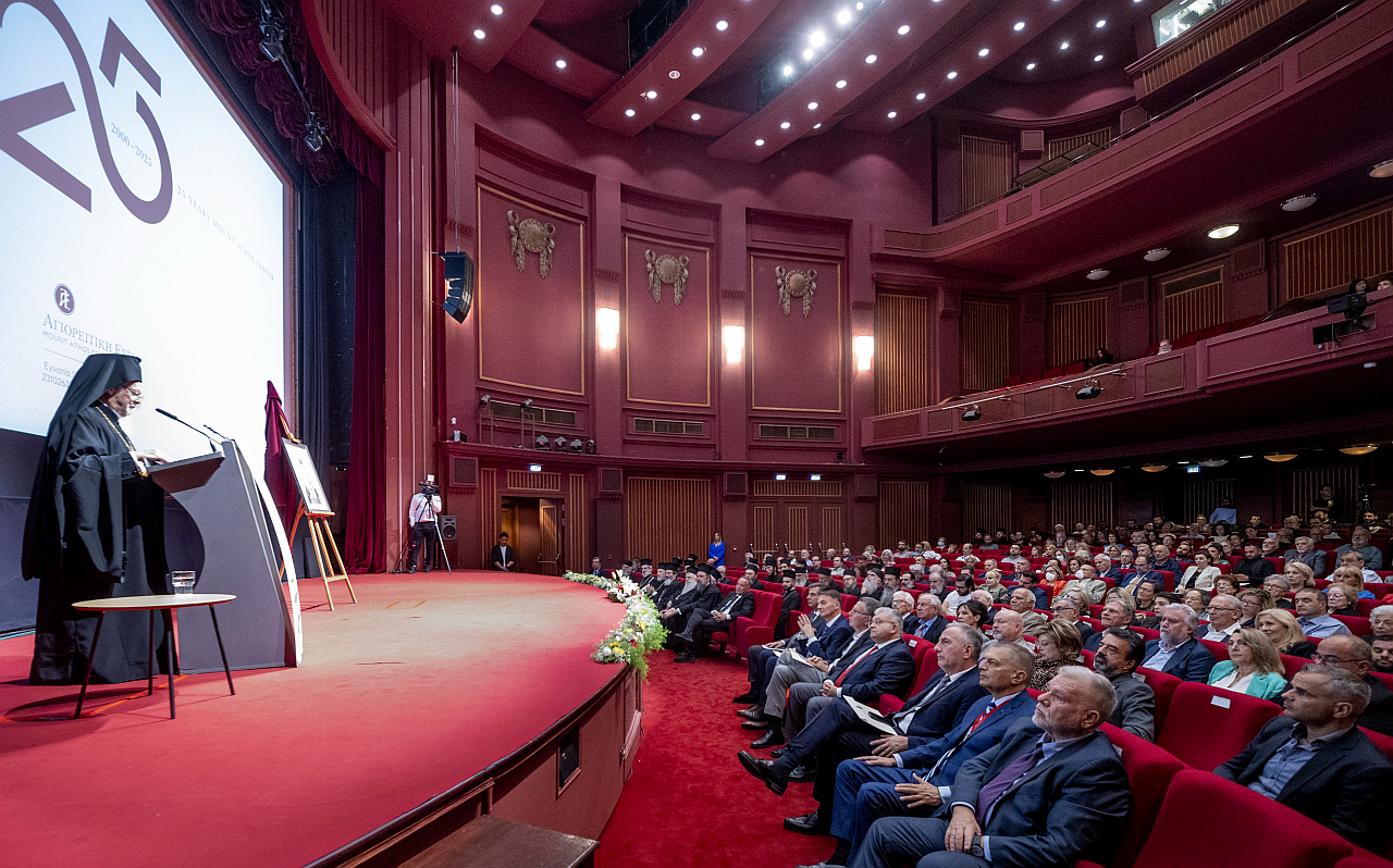Με ιδιαίτερη λαμπρότητα, παρουσία της Α.Θ.Π. του Οικουμενικού Πατριάρχου κ.κ. Βαρθολομαίου, του Μητροπολίτη Θεσσαλονίκης κ. Φιλόθεου, αγιορειτών πατέρων εκπροσώπων της Ιεράς Κοινότητας του Αγίου Όρους, ιεραρχών, ιερέων, εκπροσώπων της πολιτείας, της ακαδημαϊκής κοινότητας και πλήθους φίλων γιορτάστηκε η επέτειος των 25 χρόνων λειτουργίας της Αγιορειτικής Εστίας, την Κυριακή 28 Σεπτεμβρίου, στην κεντρική αίθουσα του Κινηματογράφου «Ολύμπιον».