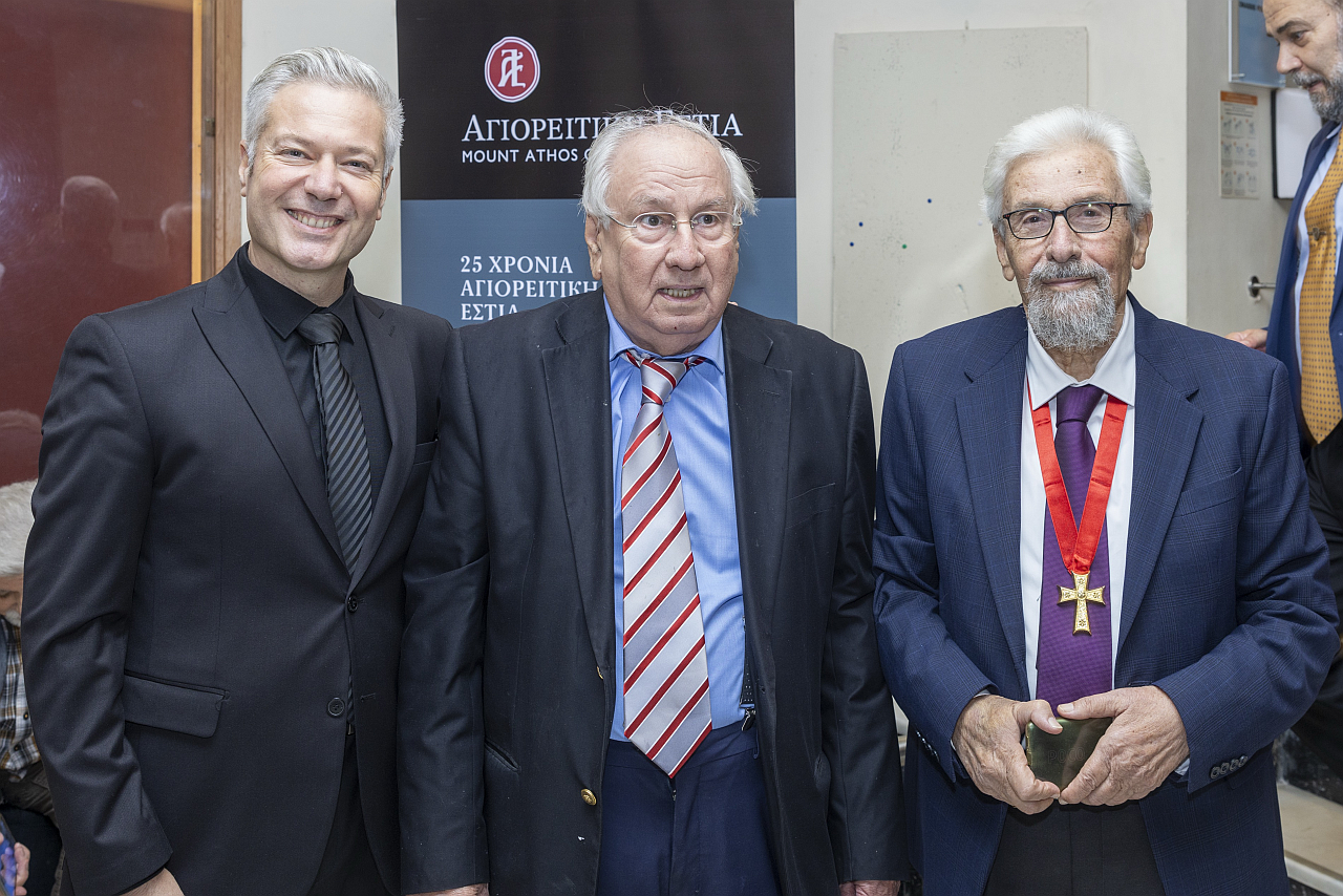 Ακολούθησε η προβολή του ντοκιμαντέρ με την ιστορία και το έργο της Αγιορειτικής Εστίας και αμέσως μετά ανέβηκε στο βήμα ο Δήμαρχος Θεσσαλονίκης και Πρόεδρος του Δ.Σ. της Αγιορειτικής Εστίας, Στέλιος Αγγελούδης, ο οποίος τόνισε αρχικά την μακραίωνη σχέση μεταξύ της πόλης με το Άγιον Όρος: «Το Άγιον Όρος λοιπόν, αποτελεί το Α και το Ω για την χριστιανοσύνη, είναι η Κιβωτός της Ορθοδοξίας, ενώ η φροντίδα της Υπεραγίας Θεοτόκου σκεπάζει όλους τους μοναχούς που υπηρετούν και φροντίζουν το Περιβόλι της αλλά και όλους όσοι το διακονούν. Αυτή η ιδιαίτερη ευλογία του καθαγιασμένου Αγίου Όρους, στεφανώνει εδώ και αιώνες την πόλη μας και μεταλαμπαδεύει σε όλους τους κατοίκους της, την χάρη και την ευλογία του.